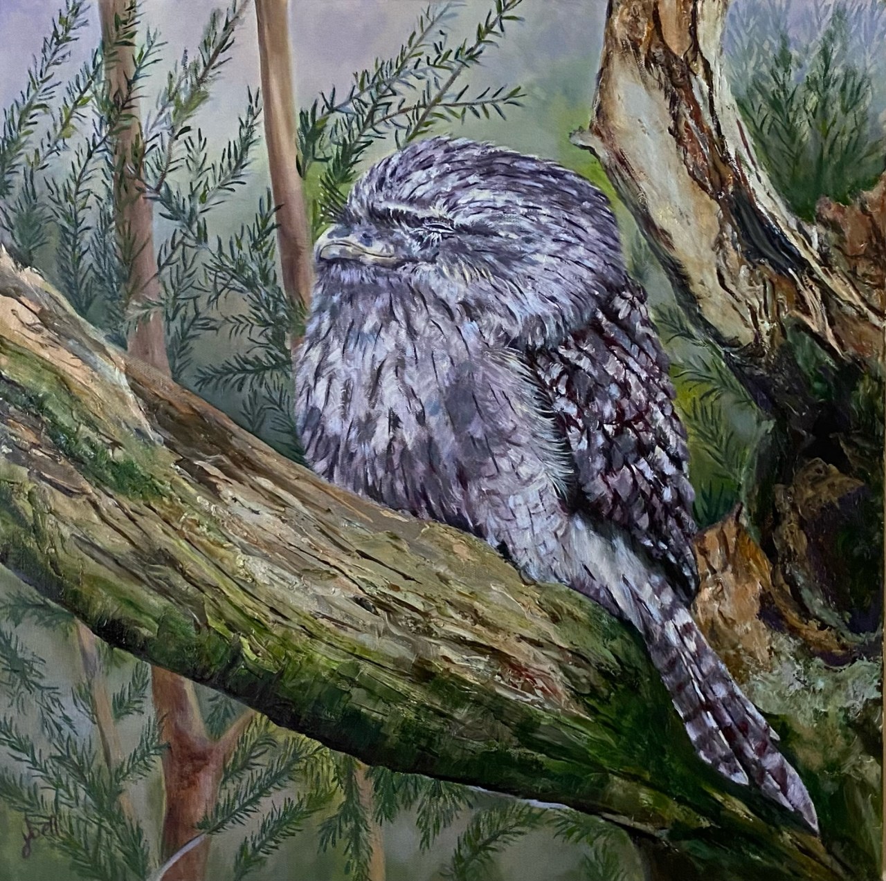 Tawny Contentment Date: 06/02/2022Author: jeninebell Category: Animals, Birds, WILDLIFE Tags: Animals, ART, bird, Birds, oil, painting, tawnyfrogmouth, WILDLIFE Post navigation ← Where the Wind Blows the Golden Grass Watching You! → MEDIUM: OIL ON STRETCHED CANVAS SIZE: 60.9CM X 60.9CM SOLD Share this: Click to share on X (Opens in new window) X Click to share on Facebook (Opens in new window) Facebook Like Loading... Related