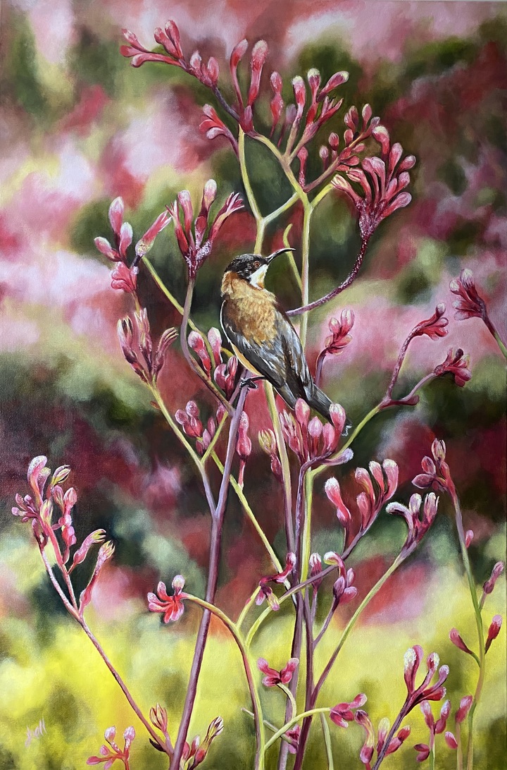 Pretty in Pink Date: 31/03/2022Author: jeninebell Category: Birds, flowers Tags: ART, bird, Birds, flowers, landscape, WILDLIFE Post navigation ← Put Colour On Your Wall! A New Day Dawns → MEDIUM: OIL ON STRETCHED CANVAS SIZE: 60.9CM X91.4CM SOLD Share this: Click to share on X (Opens in new window) X Click to share on Facebook (Opens in new window) Facebook Like Loading... Related