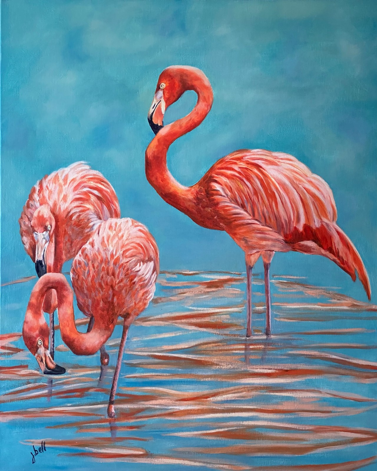 Three Flamingos Date: 10/01/2023Author: jeninebell Category: Birds Tags: Animals, Birds, FLAMINGO, flamingos, oil, painting, WILDLIFE Post navigation ← The Long Cloud Wattlebirds Gold → MEDIUM: OIL ON STRETCHED CANVAS SOLD Share this: Click to share on X (Opens in new window) X Click to share on Facebook (Opens in new window) Facebook Like Loading... Related