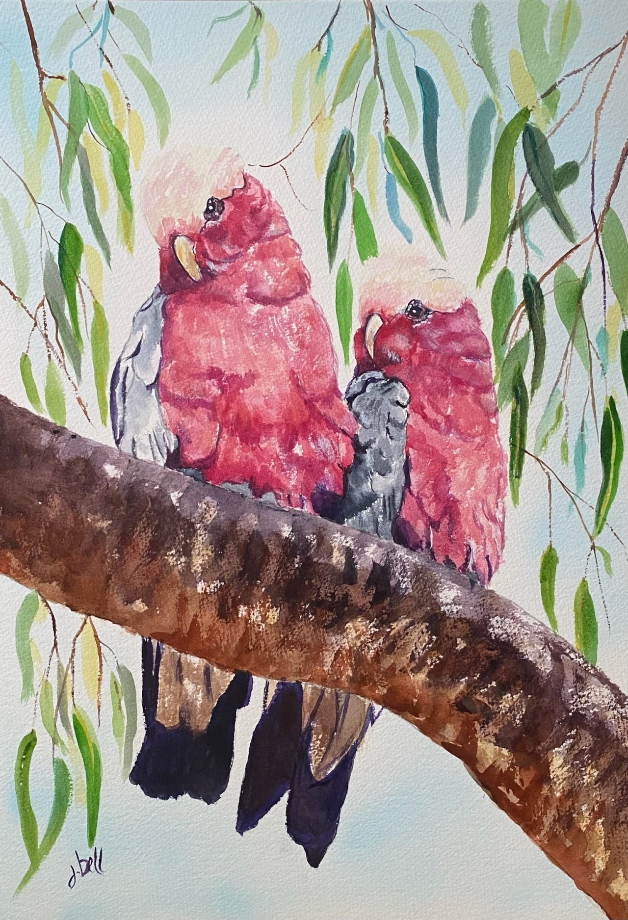 Togetherness Date: 13/02/2023Author: jeninebell Category: Birds Tags: bird, Birds, Galah, galahs, GUMTREE, painting, WILDLIFE Post navigation ← The Mail Point Cockatoo’s Billabong → MEDIUM: WATERCOLOUR ON PAPER SIZE: 36CM X 51CM SOLD Share this: Click to share on X (Opens in new window) X Click to share on Facebook (Opens in new window) Facebook Like Loading... Related