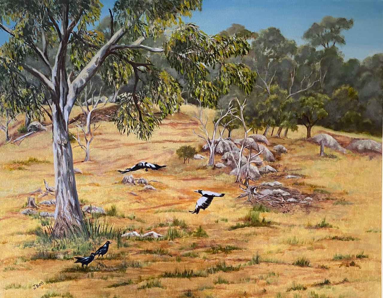 Australia-A Sunburnt Country Date: 18/09/2023Author: jeninebell Category: Birds, Landscapes Tags: ART, australia, Birds, oil, painting, WILDLIFE Post navigation ← Lily in the Wild Flowers Tranquil Waters of Metung (Victoria) → MEDIUM: OIL ON STRETCHED CANVAS SIZE: 76.2CM X 60.9CM FOR SALE Share this: Click to share on X (Opens in new window) X Click to share on Facebook (Opens in new window) Facebook Like Loading... Related