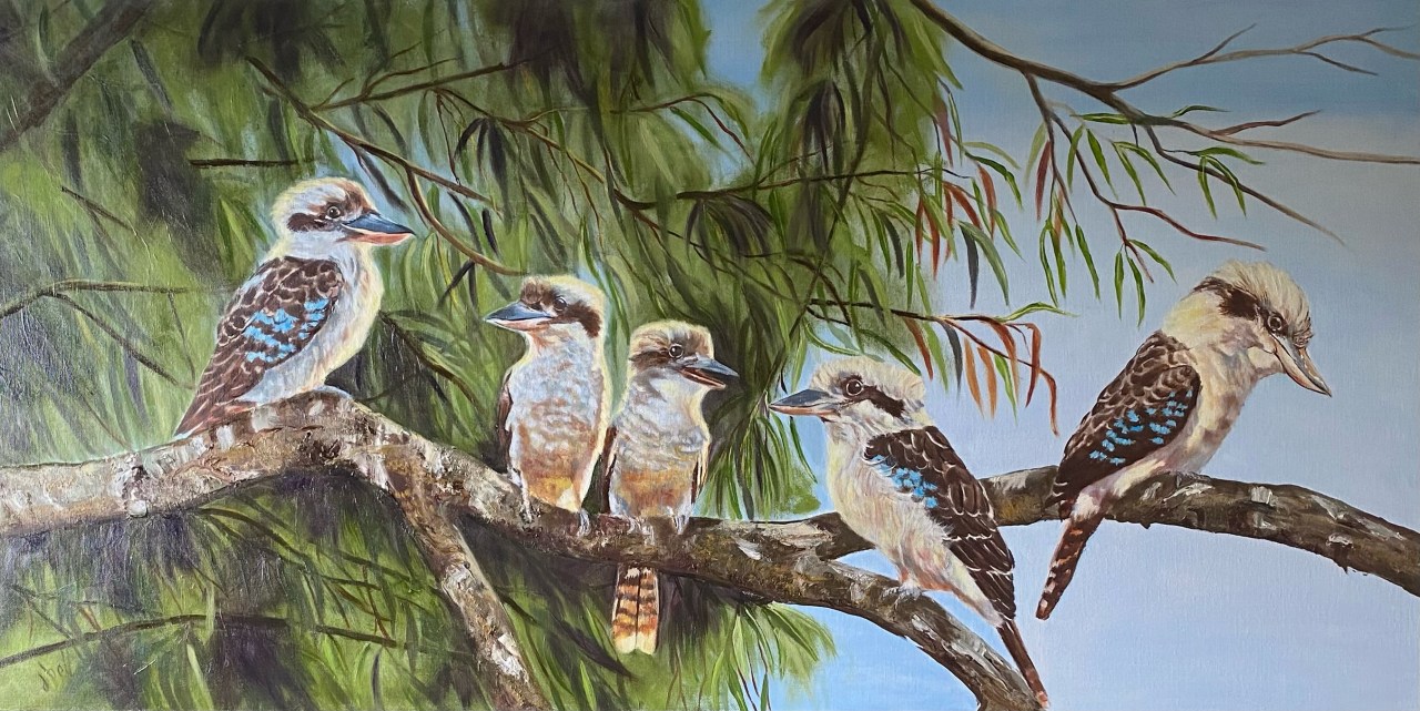 Did you hear the latest? Kookaburras Date: 08/12/2023Author: jeninebell Category: Birds Tags: Birds, kookaburra, landscape, painting, TREES, WILDLIFE Post navigation ← Kookaburra Twisted Vista → MEDIUM: OIL ON STRETCHED CANVAS SIZE: 121.8CM X 60.9CM SOLD Share this: Share on X (Opens in new window) X Share on Facebook (Opens in new window) Facebook Like Loading... Related