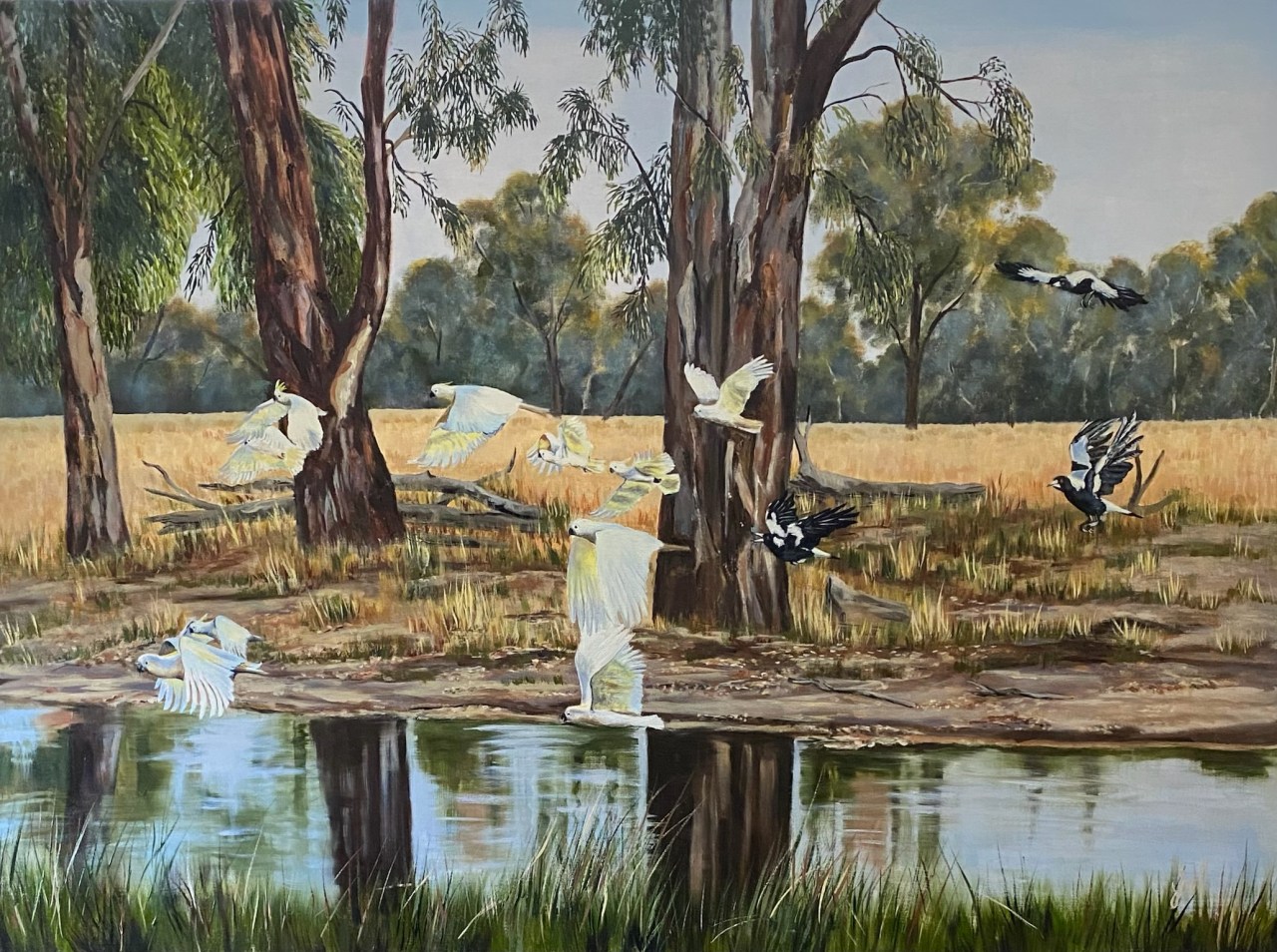 Swamp Squabbles Date: 09/01/2024Author: jeninebell Category: Birds, Landscapes Tags: australia, Australialandscape, Birds, cockatoos, landscape, magpies, oil, painting, Swamp, TREES, WILDLIFE Post navigation ← Twisted Vista Amongst The Geraniums → MEDIUM: OIL ON STRETCHED CANVAS SIZE: 91.4CM X 121.8CM SOLD Share this: Click to share on X (Opens in new window) X Click to share on Facebook (Opens in new window) Facebook Like Loading... Related