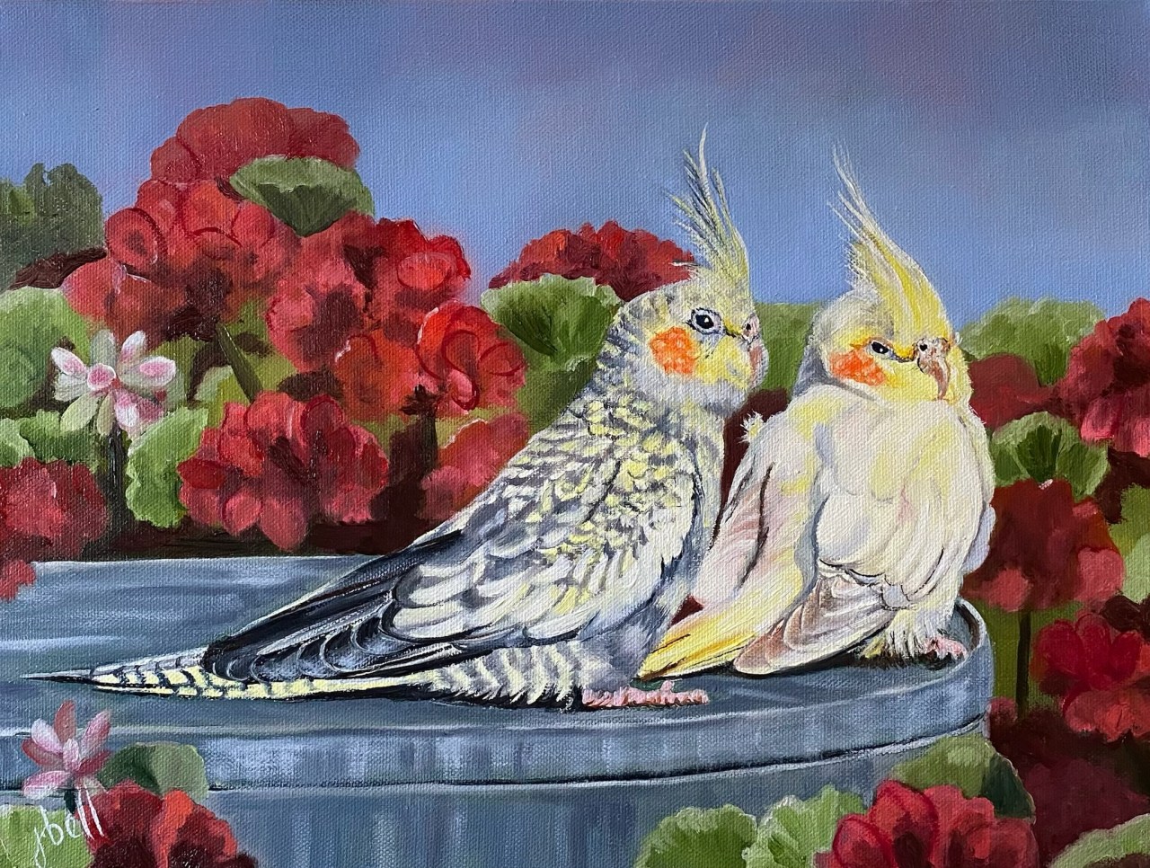 Amongst The Geraniums Date: 20/01/2024Author: jeninebell Category: Birds Tags: ART, Birds, COCKATIELS, flowers, WILDLIFE Post navigation ← Swamp Squabbles Destination Cockatoo → MEDIUM: OIL ON STRETCHED CANVAS SIZE: 30.5CM X 40.6CM FOR SALE – EXCLUSIVE TO BLUETHUMB.COM.AU Share this: Share on X (Opens in new window) X Share on Facebook (Opens in new window) Facebook Like Loading... Related
