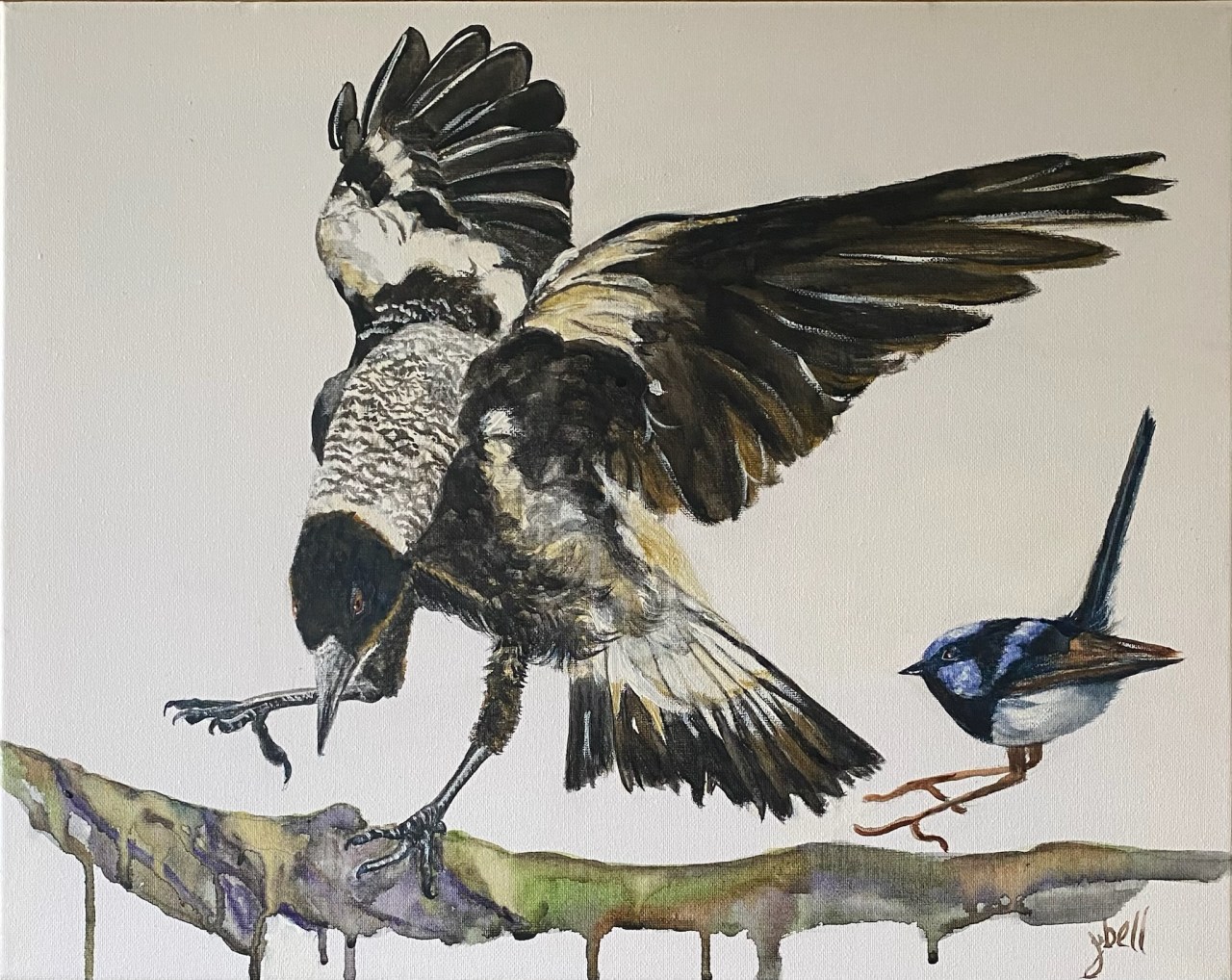 Walk This Way! Date: 27/04/2024Author: jeninebell Category: Birds Tags: bird, Birds, fairywren, magpie, painting, WILDLIFE Post navigation ← Edward – Emu Watching Us, Watching You! → MEDIUM: WATERCOLOUR ON CANVAS SIZE: 40CM X 50CM FOR SALE Share this: Click to share on X (Opens in new window) X Click to share on Facebook (Opens in new window) Facebook Like Loading... Related