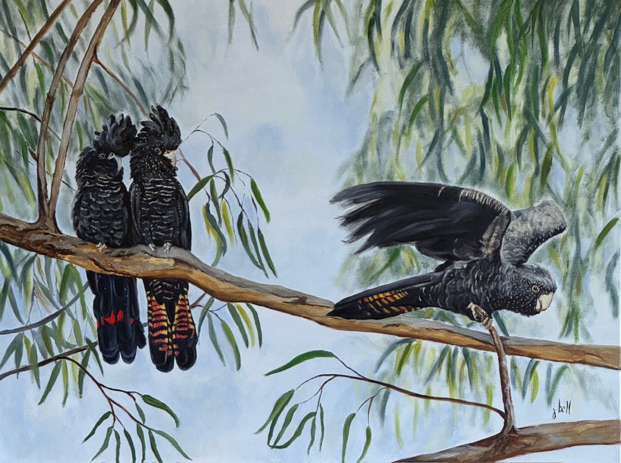 He Is Off Again Date: 07/10/2025Author: jeninebell Category: Birds Tags: Birds, blackcockatoo, JENINEBELLARTIST, painting, WILDLIFE Post navigation ← Soaring Wide Brown Land for Me → MEDIUM: OIL ON STRETCHED CANVAS SIZE: 76.2CM X 101.6CM FOR SALE Share this: Click to share on X (Opens in new window) X Click to share on Facebook (Opens in new window) Facebook Like Loading... Related
