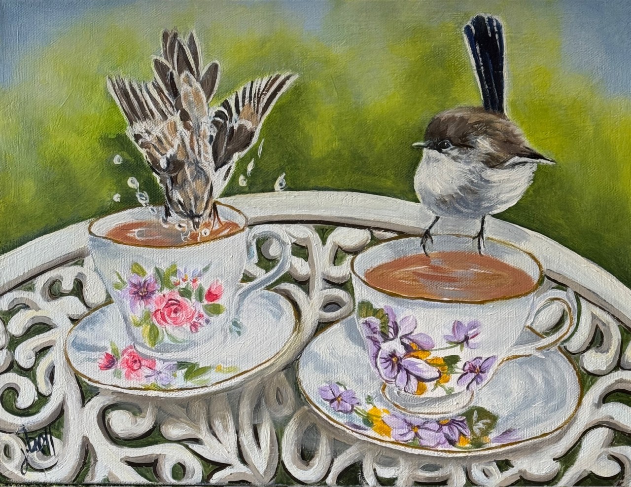Tea for Two Date: 05/12/2025Author: jeninebell Category: Birds Tags: ART, bird, Birds, JENINEBELLARTIST, painting, stilllife, WILDLIFE Post navigation ← Pride of Madeira Thunder Drama at Gundagai → MEDIUM: OIL SIZE: 40.6CM X 30.5CM FOR SALE Share this: Click to share on X (Opens in new window) X Click to share on Facebook (Opens in new window) Facebook Like Loading... Related