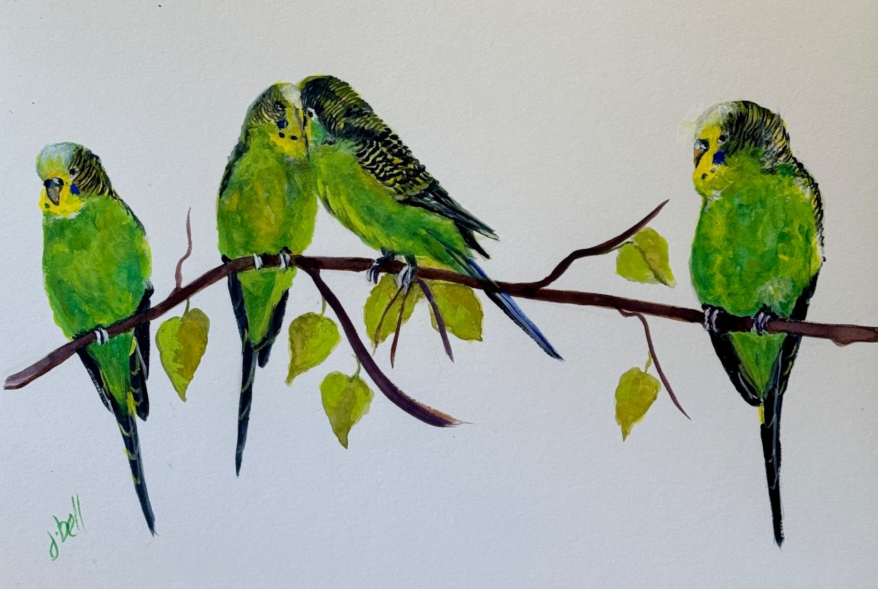 4 Little Budgies Date: 03/04/2026Author: jeninebell Category: Animals, Birds Tags: Birds, Budgies, JENINEBELLARTIST, painting Post navigation ← Native Harmony MEDIUM: WATERCOLOUR ON PAPER SIZE: 26CM X 38CM FOR SALE Share this: Share on X (Opens in new window) X Share on Facebook (Opens in new window) Facebook Like Loading... Related