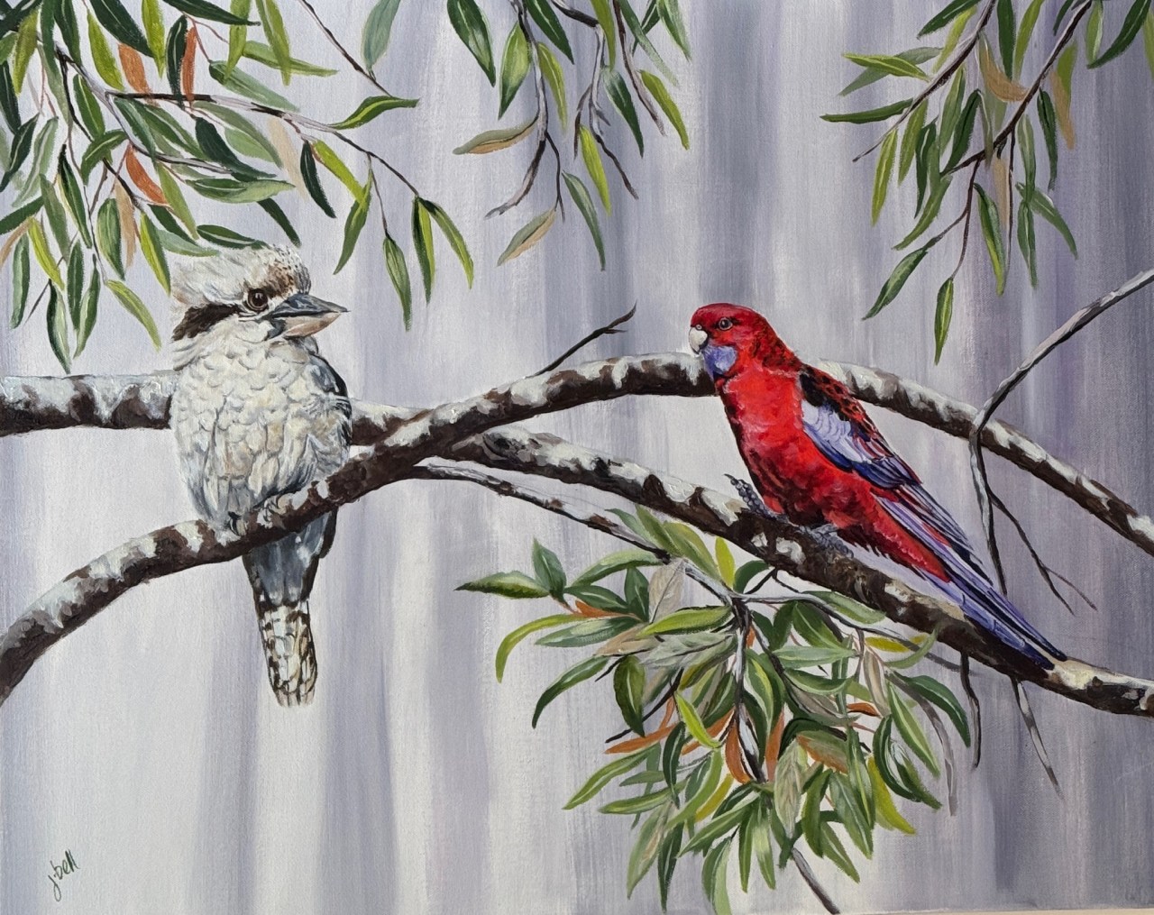 Native Harmony Date: 03/04/2026Author: jeninebell Category: Animals, Birds Tags: bird, JENINEBELLARTIST, kookaburra, rosella, WILDLIFE Post navigation ← Whispering Leaves MEDIUM: OIL ON STRETCHED CANVAS SIZE: 60.9CM X 76.2CM FOR SALE Share this: Share on X (Opens in new window) X Share on Facebook (Opens in new window) Facebook Like Loading... Related