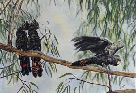 Three Cheeky Black Cockatoos